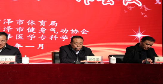为进一步贯彻实施全民健身国家战略,积极推动健身气功事业健康可持续发展,充分发挥健身气功在服务健康中国的积极作用,1月9日上午,2020年度菏泽市健身气功工作总结表彰大会暨菏泽市健身气功精品项目展示活动在我校学术报告厅隆重举行。校党委委员、副校长张传宝,菏泽市体育局局长史长华,山东省健身气功协会副会长、菏泽市健身气功协会主席陈勇参加大会,菏泽市体育局副局长张源溪主持。