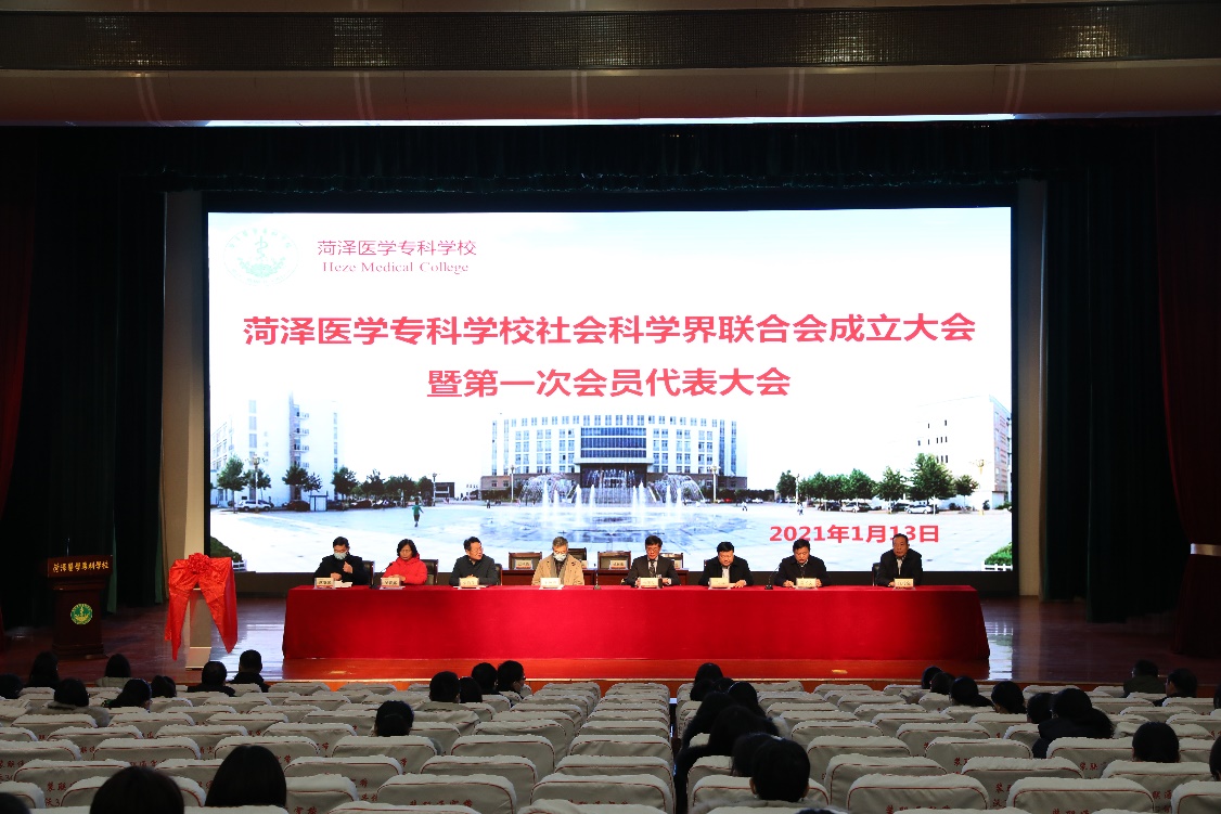 会上宣读了《中共菏泽医专委员会关于成立菏泽医学专科学校社会科学界联合会的请示的批复》、《省社科联同意菏泽医学专科学校社会科学界联合会为山东省社会科学界联合会团体会员的批复》,听取了学校社科联筹备情况工作报告,审议通过了《菏泽医学专科学校社会科学界联合会章程》,选举产生了校社科联第一届委员会委员。随后召开了第一届委员会第一次会议,选举蒋继国为校社科联第一届委员会主席,代爱英、姚树密、任俊莲为副主席,刘艳艳为秘书长。