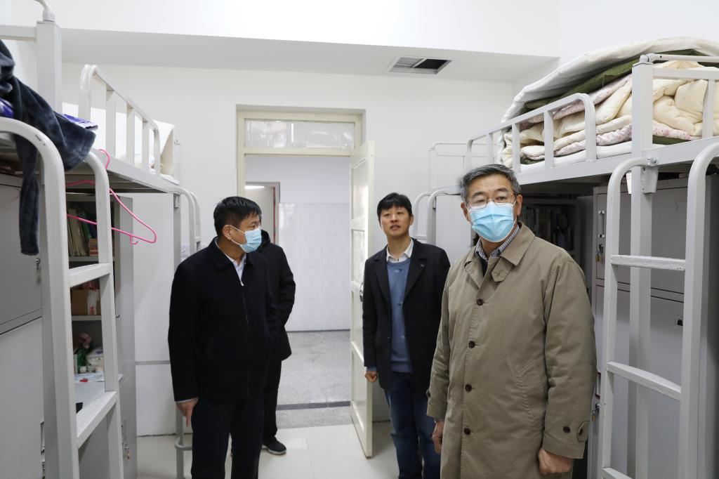 在学生餐厅,于洲声等校领导对工作人员按时进入岗位表示感谢,并详细了解餐饮供应保障情况,要求为师生做好饮食服务。在学生宿舍,校领导详细询问同学们的返校情况,嘱咐同学们做好宿舍卫生和疫情防控。于洲声书记还与返校学生交流了学习、就业等情况,勉励同学们志存高远、踏实勤奋,认真上好每一堂课,打下扎实的专业技能基础,努力成为国家人民需要的优秀医学人才。