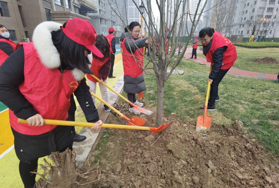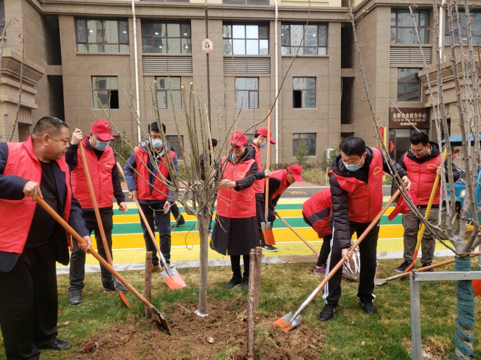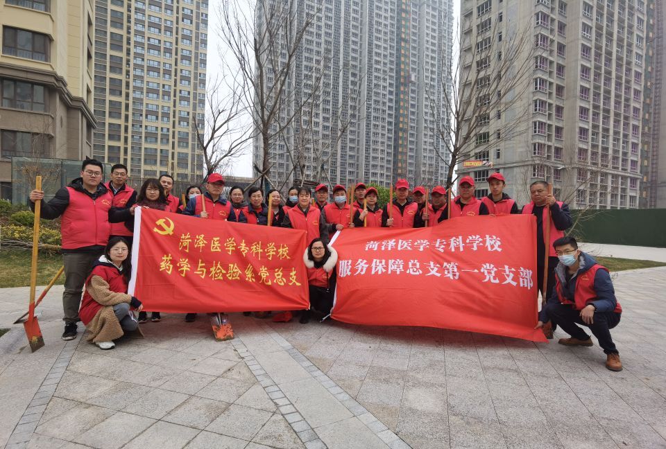 为落实”学雷锋活动月”志愿服务,助力菏泽市创建全国文明城市,植树节前夕,我校药学与检验系党总支和服务保障总支第一党支部的25名志愿者来到皇家学府小区,开展志愿植树活动。