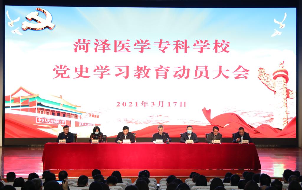 3月17日下午,我校在学术报告厅召开党史学习教育动员大会,认真学习贯彻习近平总书记重要讲话精神和党中央决策部署。党委书记于洲声作动员讲话,党委副书记周长文主持会议。学校党委领导班子成员及全体教职工参加会议。