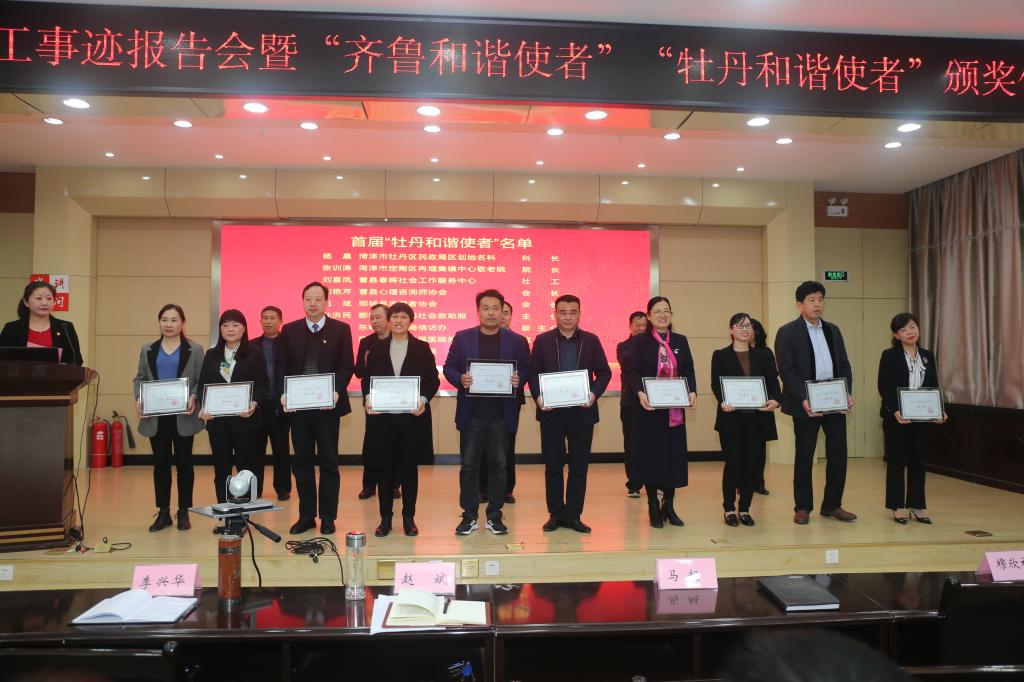 4月2日,菏泽市民政局举办优秀社工事迹报告会暨“齐鲁和谐使者”“牡丹和谐使者”颁奖仪式,我校护理系刘英老师被评为首届“牡丹和谐使者”,并作为代表发言。