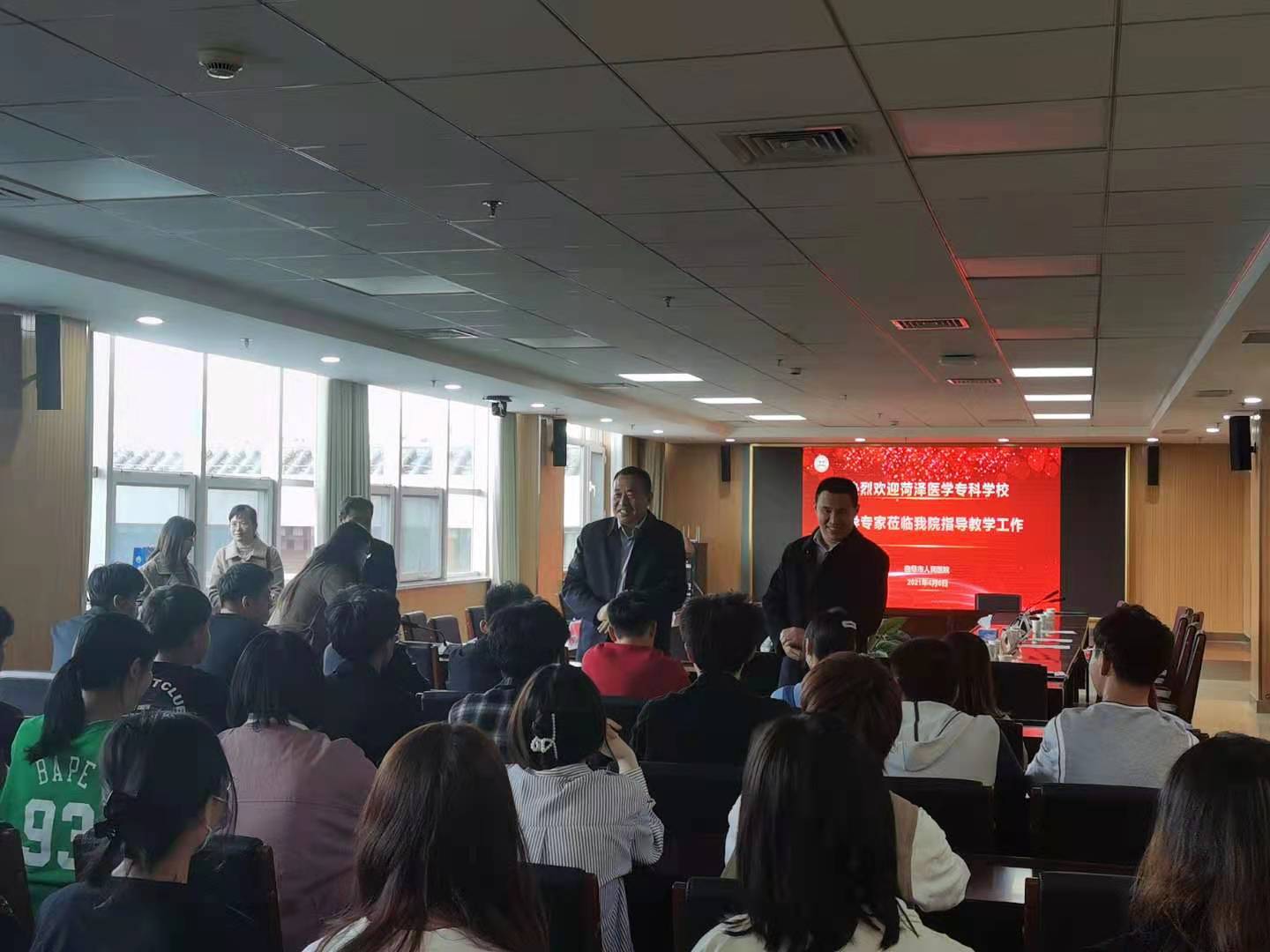 张传宝代表学校向医院领导和指导教师表示感谢,对见习生提出见习要求,一是要时刻注意各类安全问题,确保自身安全;二是要加强团结,同学之间互相帮助,珍惜机会、虚心学习、将课堂知识与临床实践紧密结合,进一步增强实践能力,圆满完成见习任务;三是要严格遵守学校、医院的各项规章制度。座谈会上,张传宝对见习学生提出的问题进行了解答,解决了学生存在的实际困难。同学们纷纷表示,见习开阔了眼界,对建立临床思维、巩固专业知识具有很大帮助。