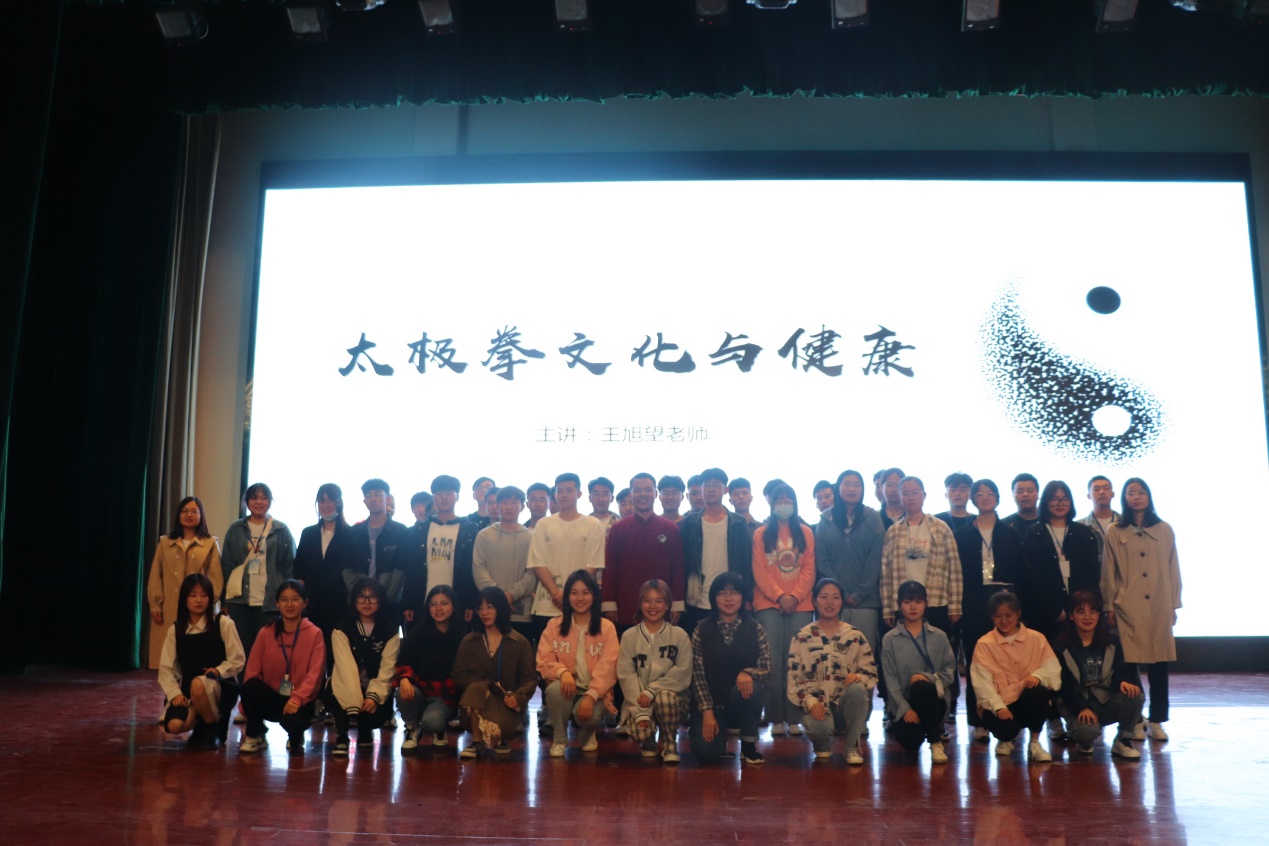 王旭望从什么是太极、大家眼中的太极拳、习练太极拳对健康的影响、太极拳是如何防身的以及如何才能练好太极拳五个方面为同学们进行了精彩的宣讲。王旭望还在现场为大家表演了一段陈式太极拳,动作有快有慢、有刚有柔、有开有合,同学们看的非常入神,有几位同学还走上舞台,亲自体验了一下太极拳的以柔克刚。随后,王旭望根据自己的教学和实践经验,分享了许多运动与健康的宝贵经验,并与同学们进行了精彩互动,让大家对太极拳这一优秀传统文化感受更加深刻。