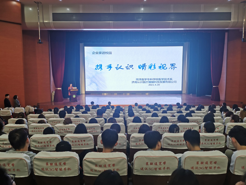 为深化校企合作,创新校企合作模式,促进产教融合,4月20日至21日,医学技术系在学术报告厅举办“企业家进校园”专题讲座第一期。本期讲座主题是角膜塑形镜进阶,到校企业嘉宾有认识医疗集团人力资源总监安红、济南认识医疗公司技术顾问张行、我校2017级眼视光技术专业毕业生许聪聪。讲座由医学技术系主任戴馨主持,教务处处长代爱英参加活动,医学技术系眼视光技术专业学生参加了本次讲座。