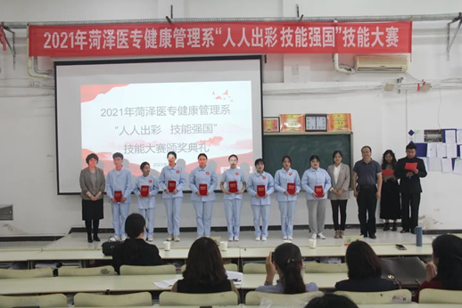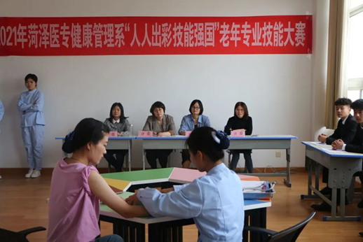 为贯彻落实《国家职业教育改革实施方案》,推动职业教育改革,建设“双高”院校,大力弘扬劳动光荣、技能宝贵、创造伟大的时代风尚,发挥以赛促教、以赛促学的作用,5月23日,我校健康管理系举办2021年“人人出彩 技能强国”技能大赛。为充分对接各专业面向的职业工作岗位任务,对接行业企业标准,大赛邀请菏泽医专附属医院护理部主任曾艳、老年病科护士胡世英、菏泽市牡丹人民医院健康管理部护士长冉苒及相关学科带头人和我校学生工作处处长郭树榜等各专业带头人、骨干教师担任评委,近100余名学生参加比赛。