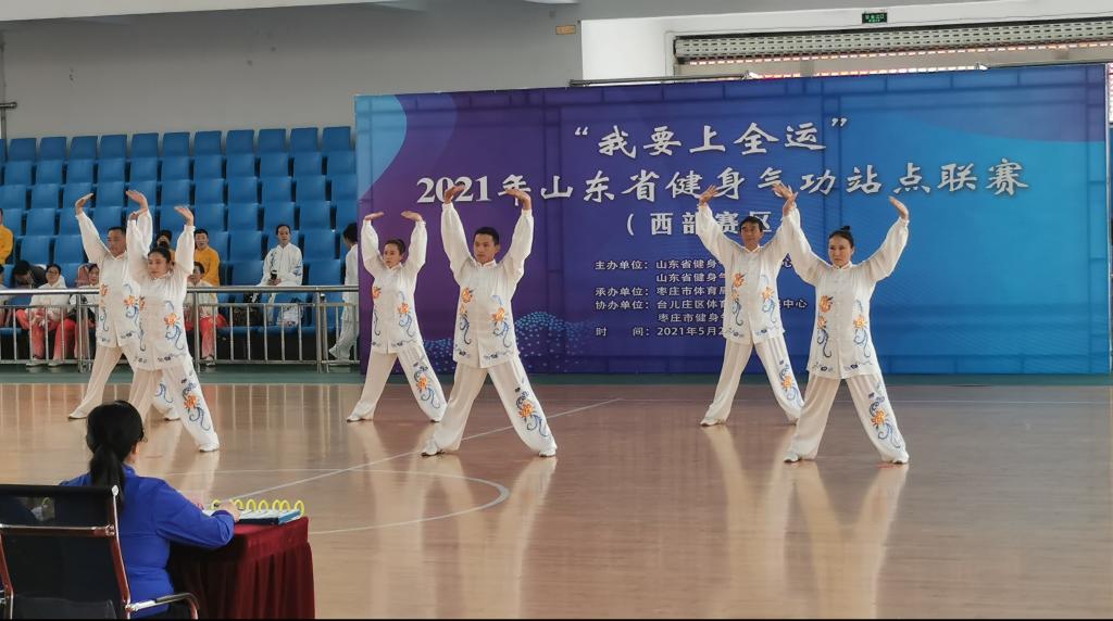 5月26日至27日,“我要上全运”2021年山东省健身气功站点联赛(西部赛区)在枣庄市台儿庄区成功举办。我校公共教学部油桂英老师和牡丹区其他5名队友在菏泽市健身气功教练员的精心指导下,经过一个多月的集中训练,在比赛中,经过激烈角逐,获得街道(社区)组五禽戏第一名、八段锦第二名的优异成绩,为菏泽市和我校赢得了荣誉和赞赏。