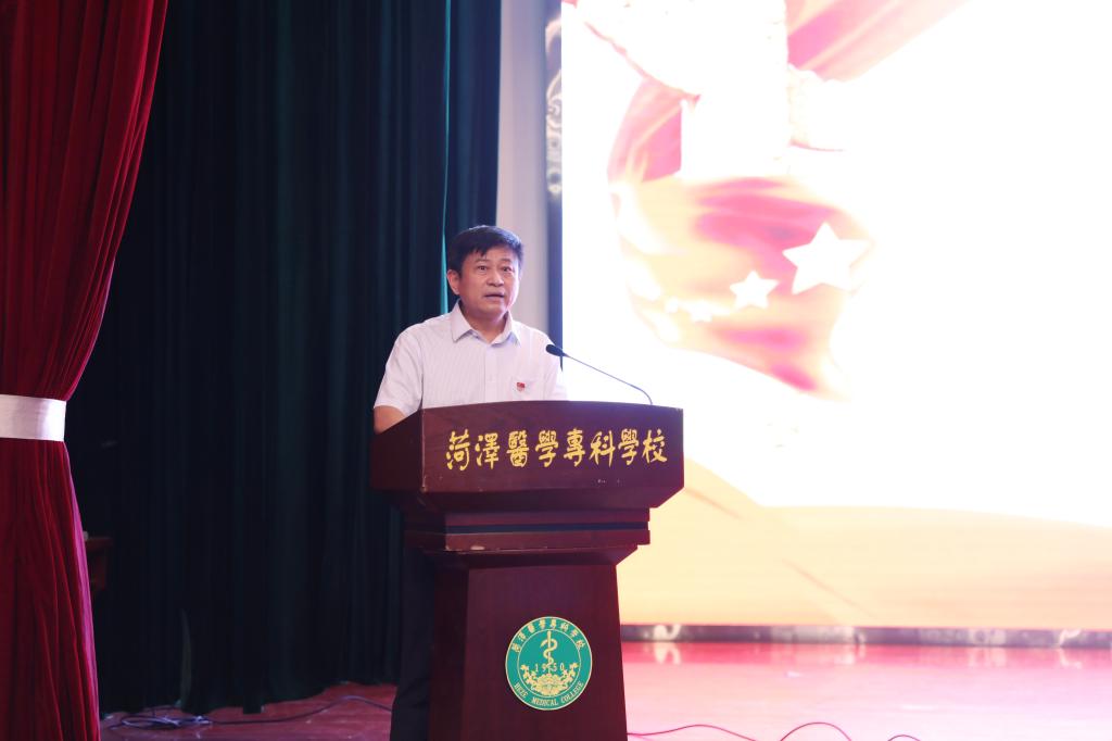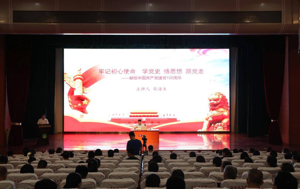 为庆祝中国共产党成立100周年,扎实推进党史学习教育, 6月1日下午,我校在学术报告厅举办党史学习教育专题讲座,邀请到菏泽市委宣讲团成员、菏泽市社科联秘书长荣海生为广大党员干部和教职工作报告。学校党委副书记周长文主持讲座。