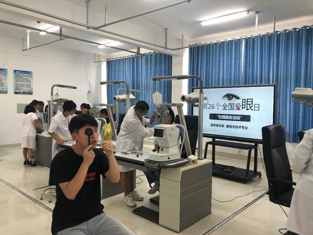 6月2日、6月6日,开展校园“爱眼日”眼健康系列活动。眼视光技术专业开展校园“爱眼日”眼健康活动,宣传近视防控知识,为全校师生进行视力检查、视功能检查、屈光检查、眼镜维修与清洗、隐形眼镜护理等服务,服务师生200余人次,加强爱眼护眼意识,提高健康素质。