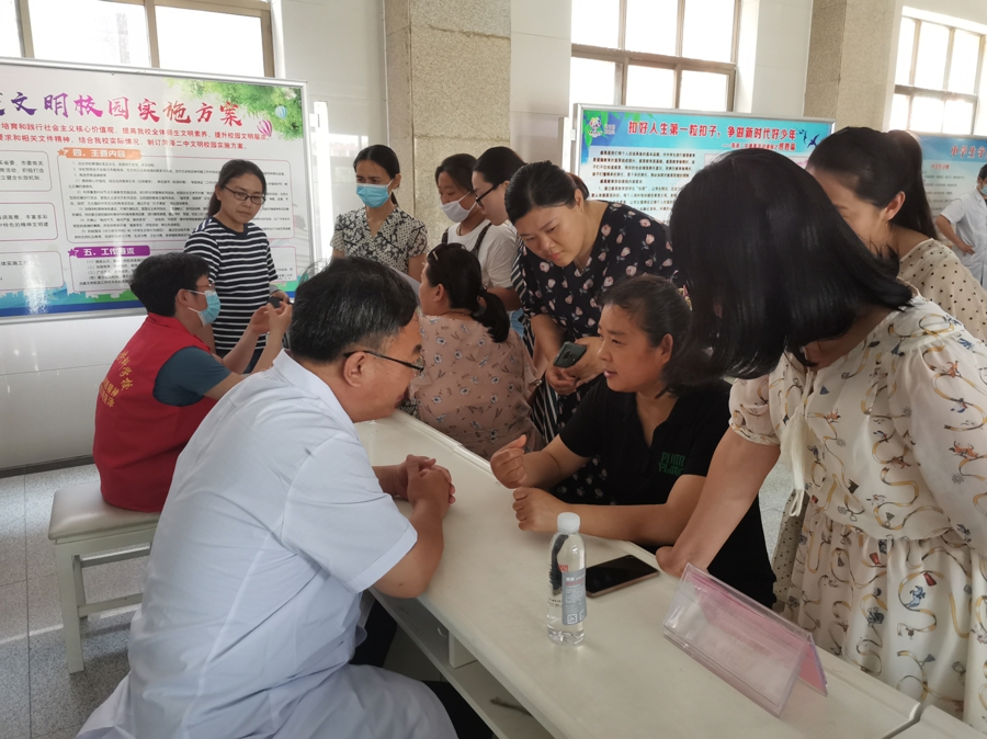 为扎实开展“我为群众办实事”实践活动,使党史学习教育走深走实,6月22日下午,我校中医药系、药学与检验系部分专家教师前往菏泽市第二中学,开展“爱心义诊进学校健康服务送园丁”活动,为学校教师们的健康保驾护航。