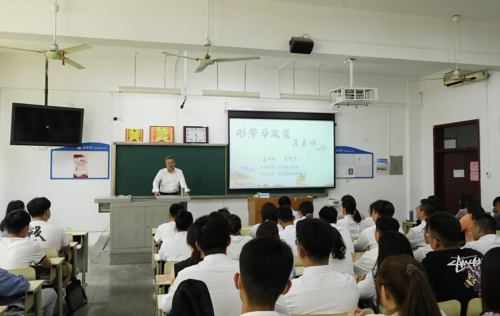 于洲声同志强调,作为当代大学生,必须了解国事家事天下事,才能更好的确立自己的人生目标,为祖国建设共同努力奋斗。(思政部 马楠/文 姚树密/审核)