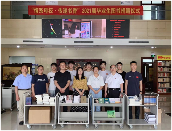 为展现我校毕业生爱校荣校的情怀,助力节约型书香校园的建设和发展,7月8日,我校在图书馆举行“情系母校·传递书香”2021届毕业生图书捐赠仪式。