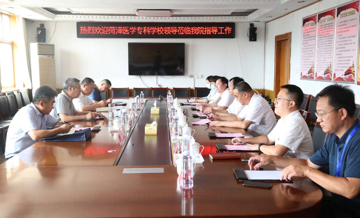 于洲声一行先后与郓城县人民医院党委书记李庆利,鄄城县人民医院党委书记李海鹏、院长焦同生等教学医院领导、职能部门负责人进行了座谈,并参观了医院的整体环境、住宿公寓及食堂等生活工作场所。