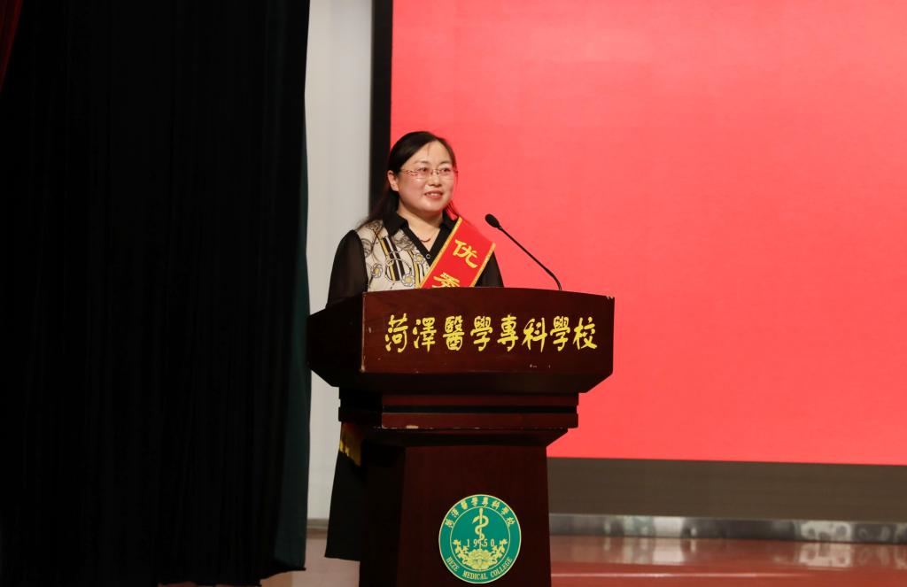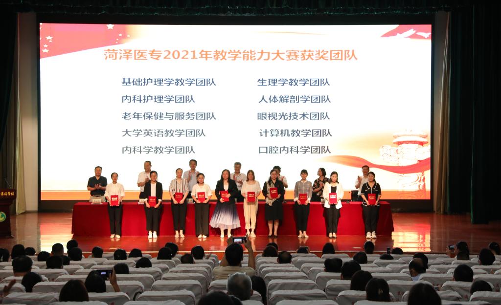 副校长蒋继国宣读了《菏泽医学专科学校关于2021年教师节表彰优秀教师等个人和集体的决定》,对2020至2021学年学校评选的20名优秀教师、39名省级教学竞赛获奖教师、49名校级教学比赛获奖教师,11名校级教师人才项目表彰教师、22名指导学生参加职业技能竞赛获奖教师;16名课程思政教学案例评选获奖教师;教科研工作成绩突出的38项2020-2021学年科研成果获奖项目主持人,予以表彰。