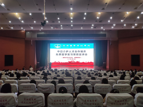 9月16日下午,我校在学术报告厅举办中日介护人才合作培养免费留学实习项目宣讲会,旨在拓宽我校大学生就业渠道,提升学生综合素质,培养国际化人才。临沂国际经济技术合作有限责任公司总经理刘建勇、副总经理石金传、日本部经理刘亚运,我校国际交流和合作处处长马建伟,健康管理系党总支书记李莹、主任石晓峰、2021级全体辅导员参加宣讲会。会议由李莹主持。