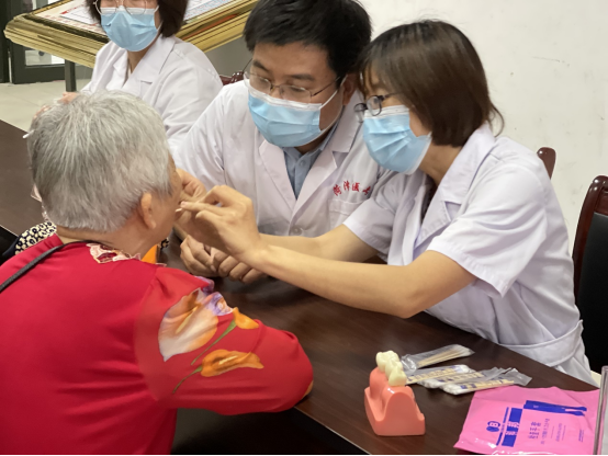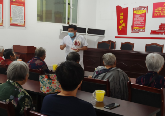 吕继忠副书记为社区居民进行口腔健康知识宣讲。他详细讲解了如何正确刷牙——BASS刷牙法及牙齿缺失后的修复方法。为社区居民普及完牙齿健康知识后,在百花社区服务大厅为居民进行了口腔健康检查,对于他们的口腔问题给予合理的治疗建议。除此之外,还为社区居民测量血压、现场口腔健康咨询等等。