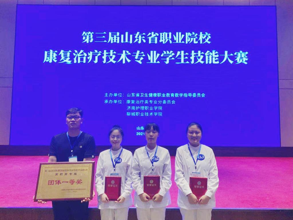 在本次比赛中,我校2019级康复治疗技术专业赵冉冉、苗晓冉、谷梦娇三名同学表现突出,取得优异成绩。我校共斩获单项一等奖1个,单项二等奖2个,单项三等奖2个,并荣获团体一等奖。