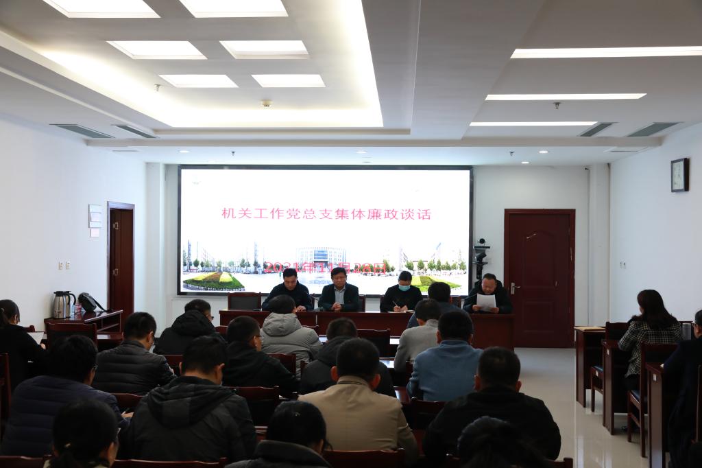 11月28日下午,我校机关工作党总支在图书楼第三会议室开展集体廉政谈话,学校党委副书记周长文、机关工作党总支书记樊建旺、教务处处长代爱英、党总支副科级及以上党员干部参加了廉政谈话。