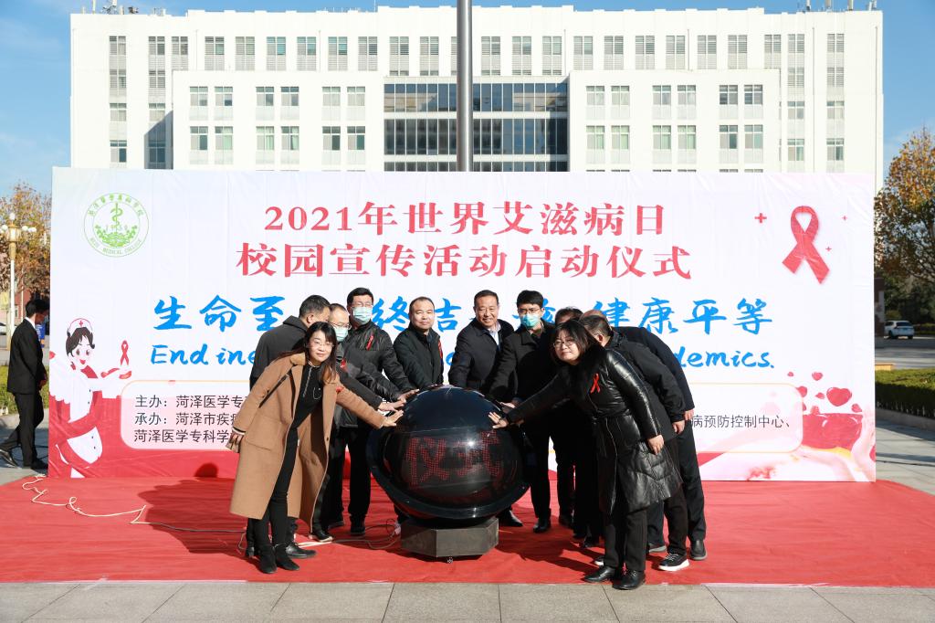12月1日上午,由我校护理系党总支、健康管理系党总支联合菏泽市卫生健康委员会、菏泽市妇联、共青团菏泽市委、菏泽市疾病预防控制中心、菏泽市传染病医院、菏泽市性病艾滋病防治协会、牡丹区疾病预防控制中心举办的2021年世界艾滋病日校园宣传活动启动仪式在石泉广场举行。