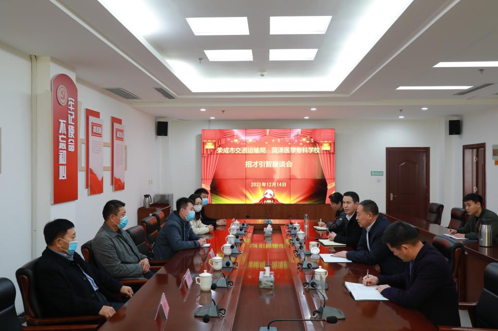 12月14日,荣成市交通运输局招才引智座谈会在我校第一会议室召开。荣成市交通运输局规划基建科科长刘逢源一行六人参加座谈会,学校党委委员、副校长张传宝出席会议,校企合作与培训就业处全体人员参会。座谈会由校企合作与培训就业处处长王学贺主持。