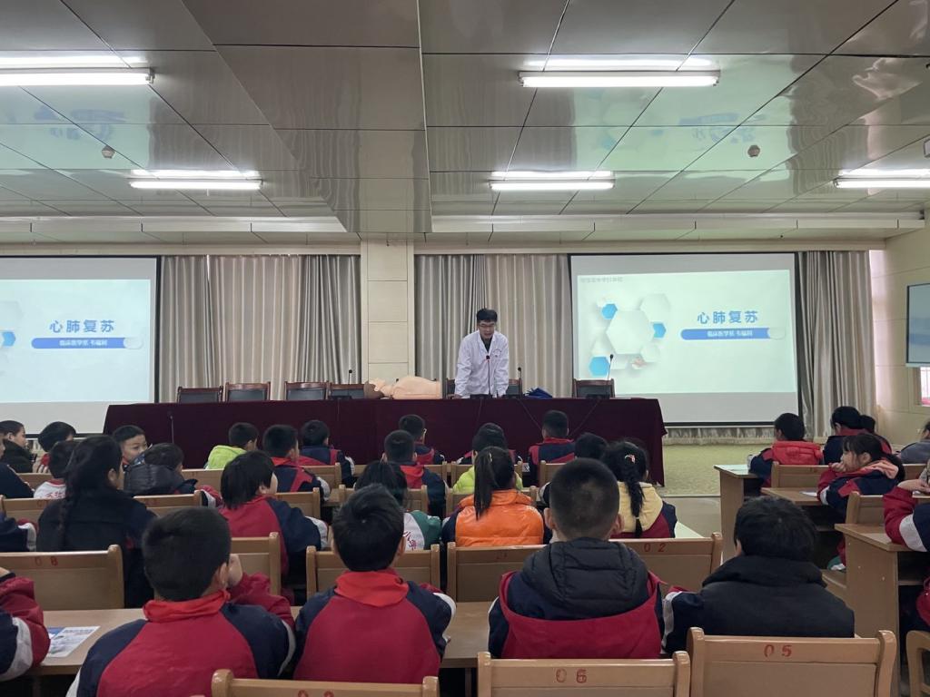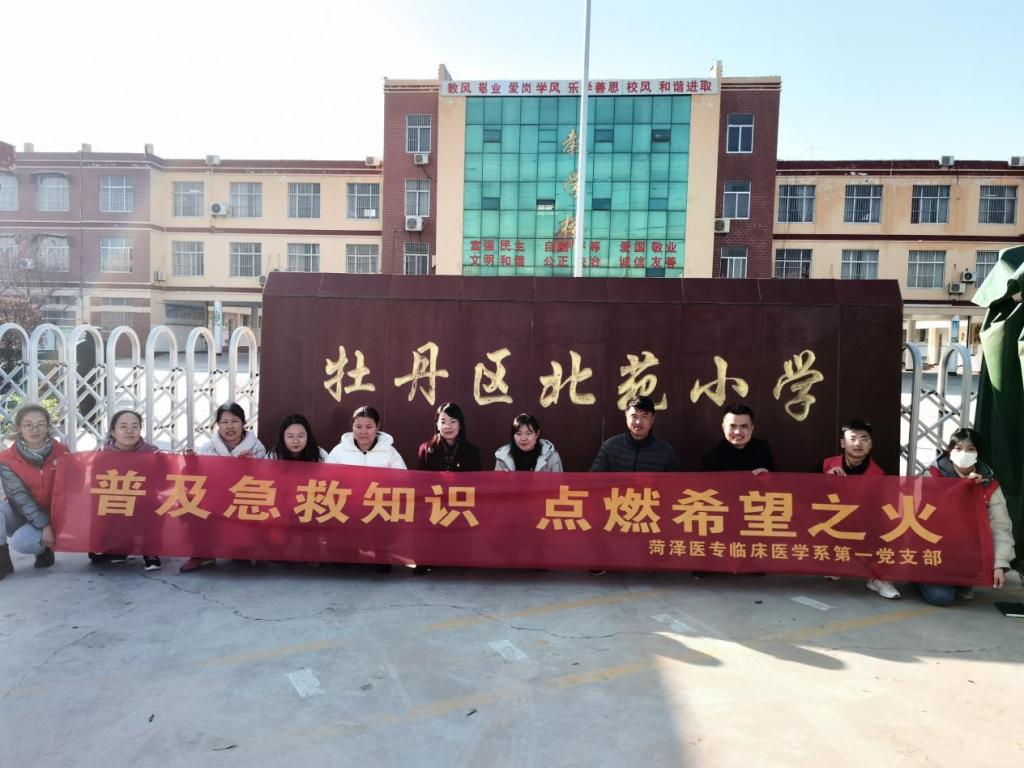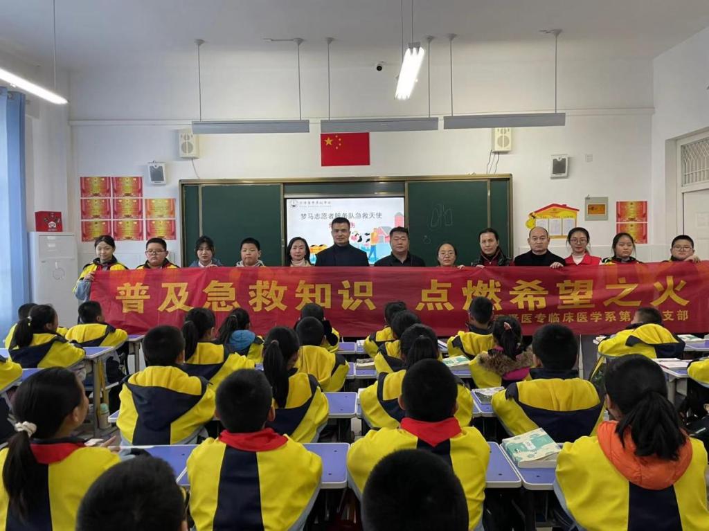 为积极响应国家《健康中国行动(2019-2030年)》文件中"健康知识普及"专项行动,结合专业优势,临床医学系党总支携我系梦马志愿者服务队师生前往菏泽市牡丹区北苑小学、牡丹区第三实验小学、牡丹小学,开展以“普及急救知识,点燃希望之火”为主题的急救知识宣教系列活动。