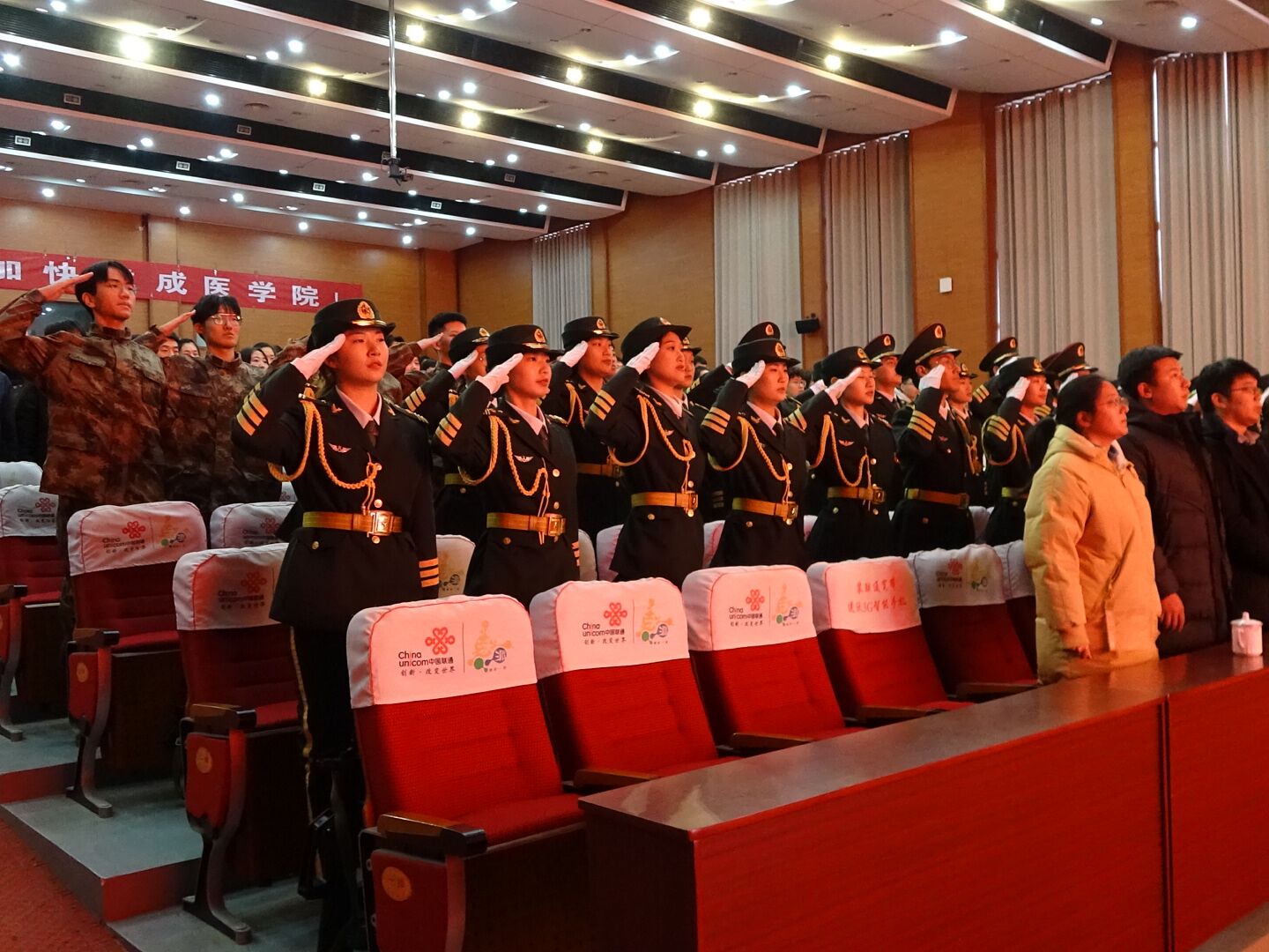 12月24日下午,我校在学术报告厅举行第三届国旗护卫队换届交接仪式,团委书记于淼、学生处副处长刘建海、校团委老师、各系团总支书记、国旗护卫队全体队员及各系学生代表参加了此次仪式。