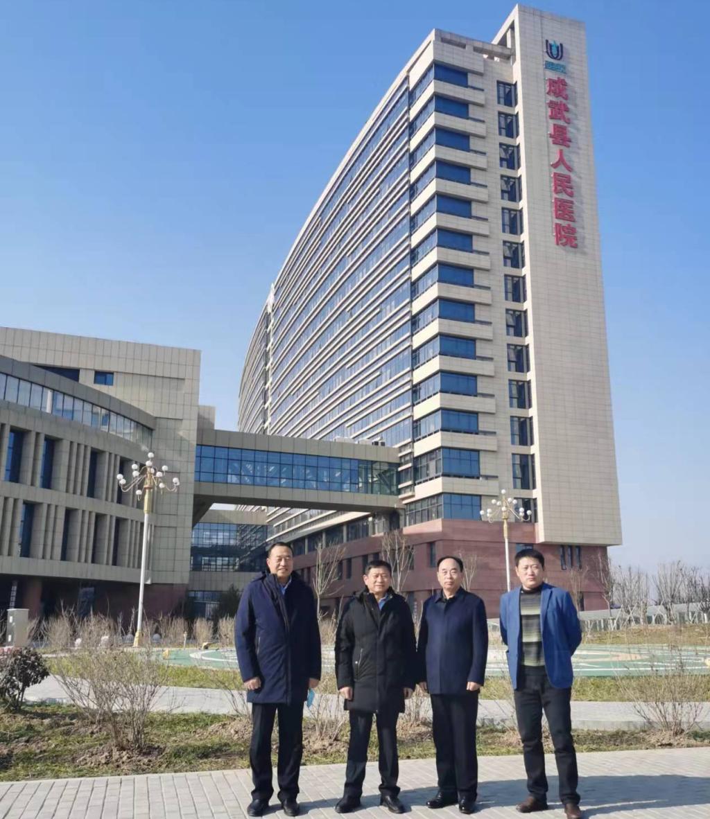 平邑县人民医院院长乔志正、成武县人民医院党委书记平雨华分别带领院领导班子、职能部门负责人参加座谈会。院方对周长文、张传宝一行的到来表示热烈欢迎,随后在座谈会上对医院基本情况、人才培养情况等进行了介绍,表示希望与我校合作协同培养基层医疗人才,形成校院繁荣发展的新局面。周长文、张传宝对医院多年来对学校实践教学工作的支持表示感谢,并介绍了学校基本情况、发展前景及实践教学情况。双方就临床见习教学安排、深化校院合作等方面进行了洽谈。会后,周长文、张传宝一行实地调研了医院部分临床科室、实践教学教室、学生宿舍、食堂等教学和生活场所。