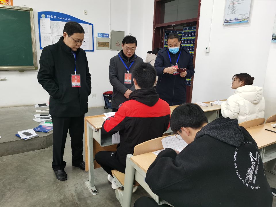 2022年1月4日上午,校长顾润国,副校长张传宝、蒋继国等学校领导到期末考试现场,开展考试巡查工作。