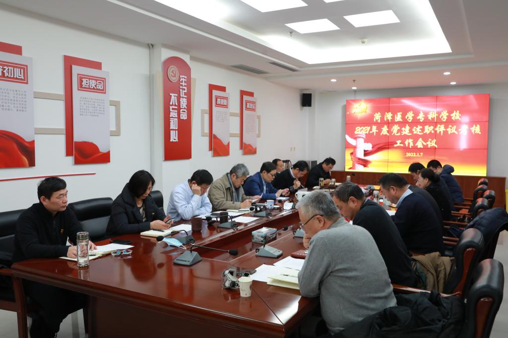 1月7日上午,我校在图书楼六楼第一会议室召开2021年度党建述职评议考核会议。学校党委领导班子成员、各党总支(党委、直属党支部)书记、二级部门主要负责同志参加了会议。会议由学校党委副书记周长文同志主持。