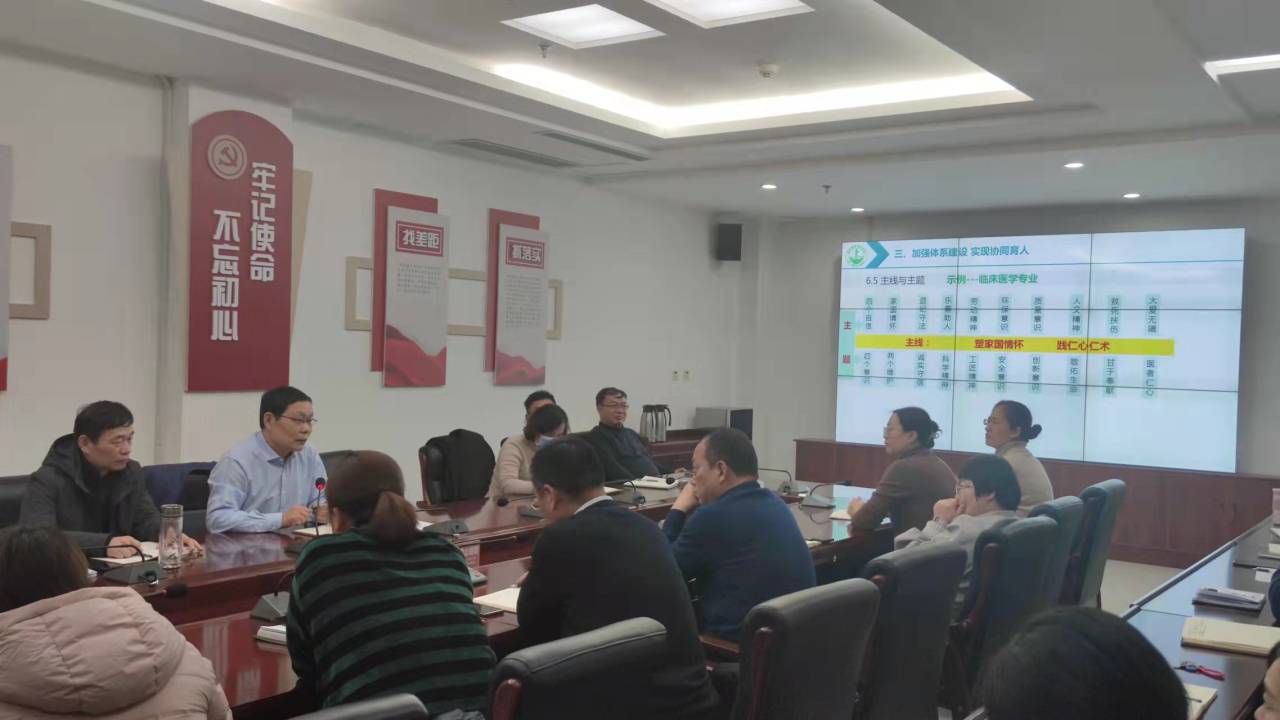 顾润国听取汇报后,他首先肯定了近年来我校课程思政体系建设成效,以及中心、各专业和各课程在课程思政建设中取得的成绩,也指出了存在的不足,并对2022年课程思政建设工作的开展提出了具体的要求。顾润国强调,大家要进一步提高政治站位,端正课程思政工作态度,深入学习贯彻落实习近平总书记在全国教育大会上的讲话,落实《高等学校课程思政建设指导纲要》等相关文件精神,切实理解课程思政的内涵,用实际行动去践行人民教师教书育人的光荣使命,守好一段渠,种好责任田,充分发挥每一门课程的育人功能,形成育人合力,培根铸魂,落实立德树人。随后顾润国又以临床医学专业为例,就如何凝练课程思政专业主线、课程主题、课堂话题为切入点,对专业课程思政体系的构建进行了深入的剖析,详尽的解读,为大家进一步深化课程思政建设指明了方向,提供了蓝图。