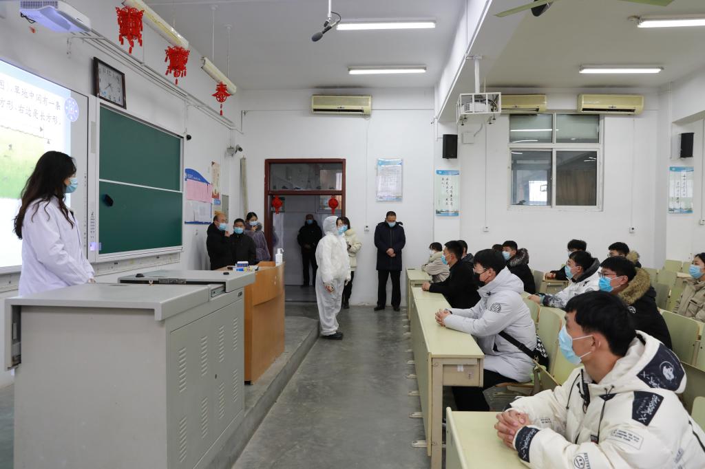 为全面做好校园疫情常态化防控工作,提升疫情防控应急反应处置能力,确保2022年春季学期各项工作顺利运行,按照上级有关疫情防控要求和学校疫情应急演练方案安排,2月18日下午,我校组织教职工开展疫情防控应急处置演练。学校疫情防控领导小组组长、党委书记于洲声,副校长张传宝、齐云飞,牡丹区疾控中心李保华,牡丹派出所赵孝稳,学校各二级部门负责人以及部分教职工共同参与此次演练。