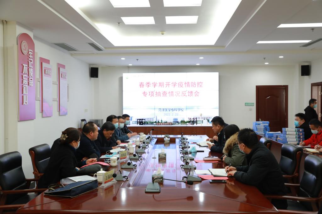 反馈会上,检查组对我校开学准备和疫情防控工作表示充分肯定。王广森指出,要严格按照省教育厅工作要求,以高度的政治责任感和使命感,严密部署、严格防范,把疫情防控和开学各项准备工作做扎实、做到位,抓好师生安全管理和思想教育。他强调,要严格落实常态化疫情防控措施,坚持“人-物-环境”同防和多病共防,细化完善应急预案,确保校园安全和平稳有序,压紧压实责任,织密扎牢校园疫情防控网,坚决守护好广大师生员工生命安全和身体健康。(宣传部贾先奎/文朱慧娴/图郭树榜/审核)