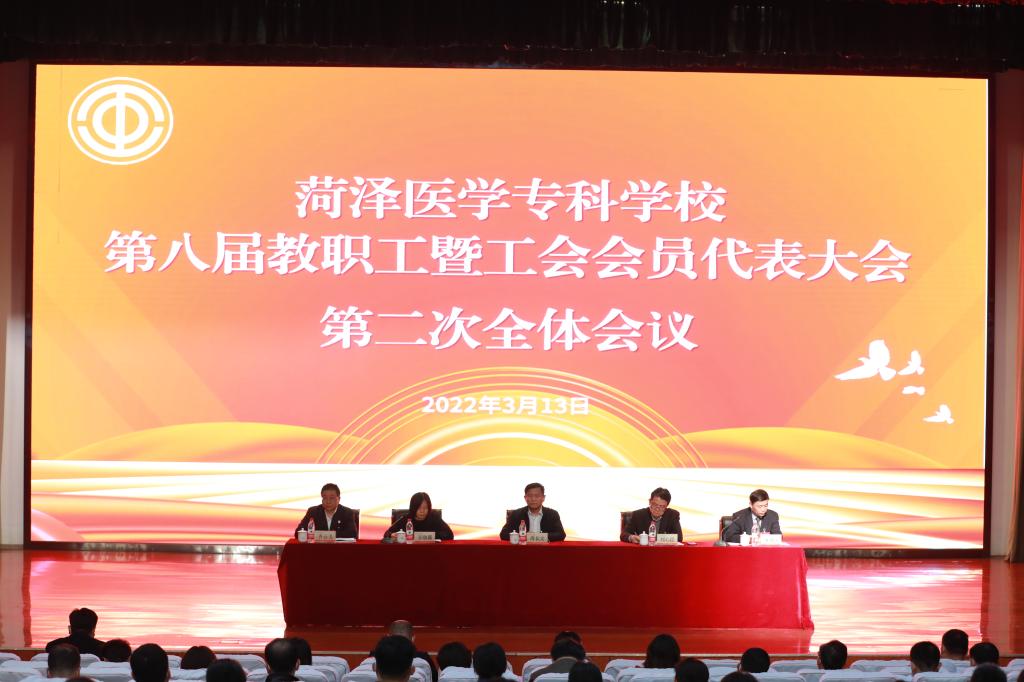 3月12日上午,我校召开第八届教职工暨工会会员代表大会(简称“双代会”)。菏泽市总工会党组书记、常务副主席刘守文,我校党委书记于洲声,党委副书记、校长顾润国等全体校领导出席。我校党委委员、附属医院党委书记刘心臣主持大会。93名代表认真履行代表职责,围绕学校发展建言献策。