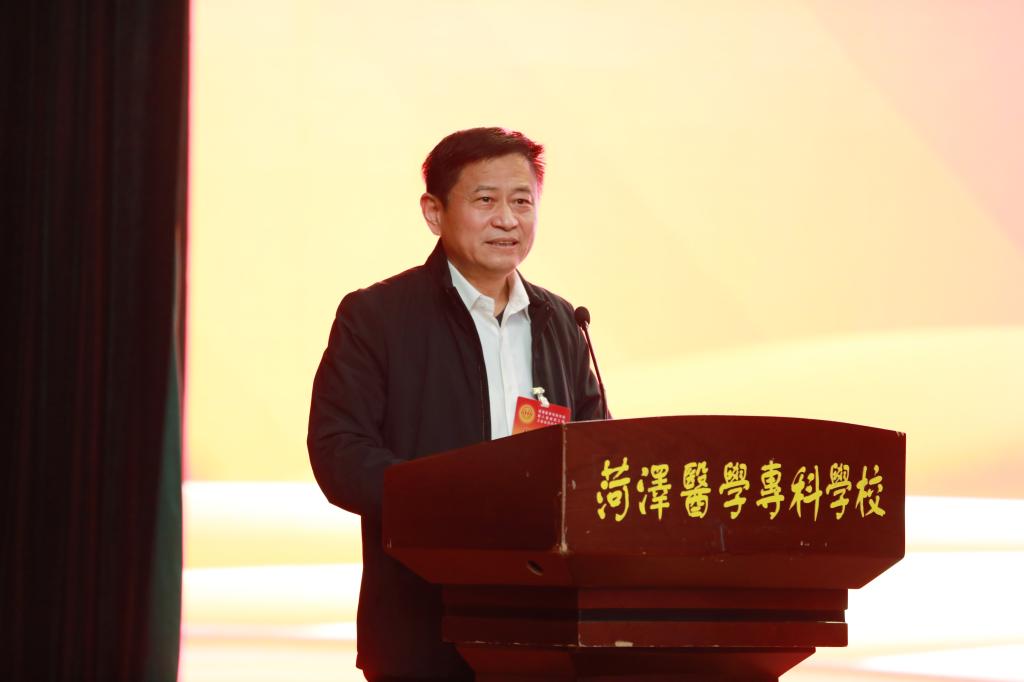 刘守文致贺词。他表示,近年来,菏泽医专工会在加强教职工思想政治工作、强化民主管理、增进师生团结、加强自身建设等方面做出了显著成果。未来,广大工会会员和全体教职工要进一步增强使命感、责任感,弘扬优良传统,挖掘发展潜力,培育办学特色,提高办学质量,为实现学校高质量发展,为菏泽市卫生健康事业和经济社会发展做出新的更大贡献。