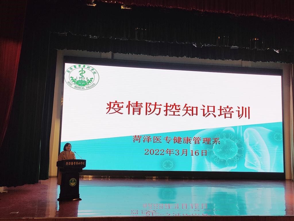 为进一步增强疫情防控应急处置能力,强化全体师生疫情防控知识技能,3月16日下午,我校在学术报告厅举办疫情防控知识培训。健康管理系党总支书记李莹、主任石晓峰,全体专兼职辅导员和学生志愿者参加本次培训。