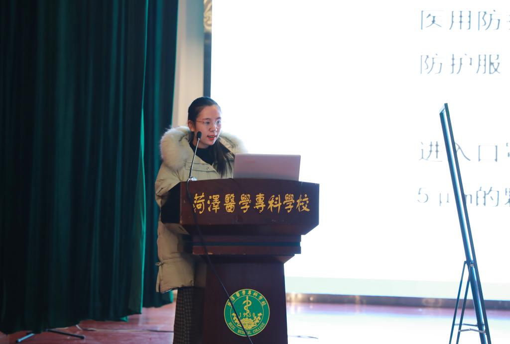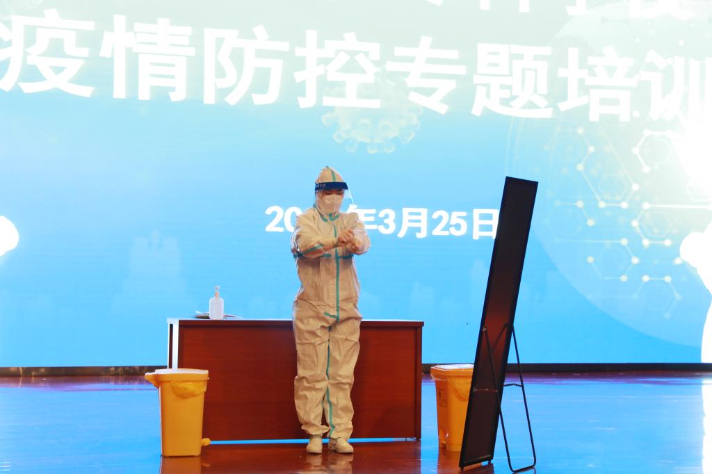 孙丽娜以疫情防控实战为重点,从防护用品选用及穿脱、手卫生和清洁消毒三个方面,对疫情期间师生的防护措施进行了细致讲解,并现场对防护服的穿脱、手卫生等进行了演示示范。