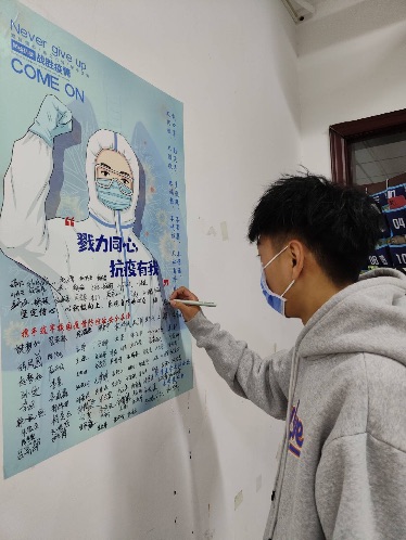 防控期间,辅导员坚守岗位服务同学,深入宿舍开展谈心谈话活动,了解学生的需求,解读学校防疫政策和措施,帮助同学们解决实际问题。各系各班级积极响应,围绕“勠力同心,抗疫有我”召开主题班会,就疫情认知及个人行动展开激烈讨论。同学自发进行承诺宣誓,争做健康责任第一人,做好“应做之事”,尽好“应尽之责”,以大局为重,主动遵守疫情防控各项规定,帮助周围同学配合做好学校疫情防控各项工作,拒绝非法无证商贩外卖进入校园,最大限度切断疫情风险来源。