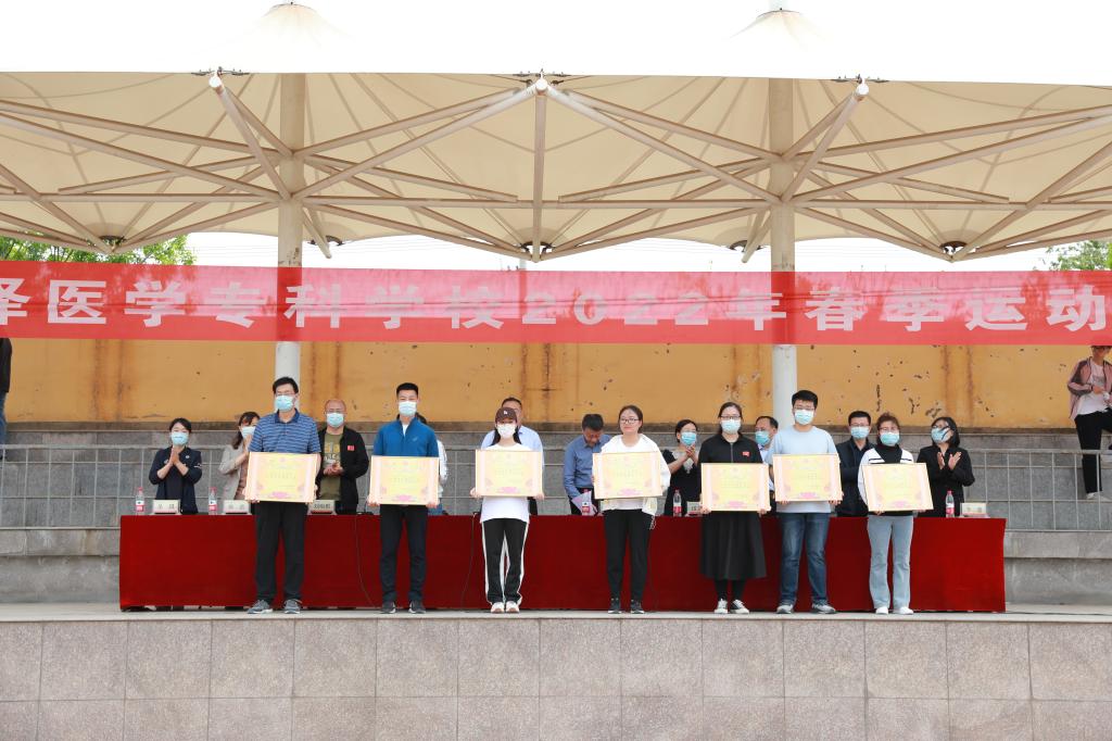 本次运动会设有100米、200米、400米、800米、1500米、3000米、4X100米、跳高、跳远、铅球、前抛实心球等多个运动项目。经过为期一天半的激烈角逐,运动会顺利完成各项赛程,共有16个班级获得团体奖,16个班级获得精神文明奖,7个系部获得优秀组织奖。学校领导对走上领奖台的代表们一一进行了颁奖。