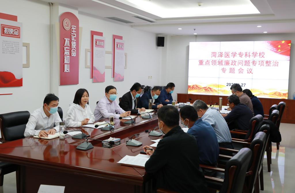 为进一步贯彻落实省委教育工委和菏泽市委教育工委有关文件精神,4月27日下午,学校在图书楼第一会议室召开重点领域廉政问题专项整治行动专题会议,校党委副书记、校长顾润国出席会议并讲话,学校重点领域廉政问题专项整治行动工作组全体成员及相关部门负责人出席了会议。会议由校党委委员、纪委书记吴晓露主持。