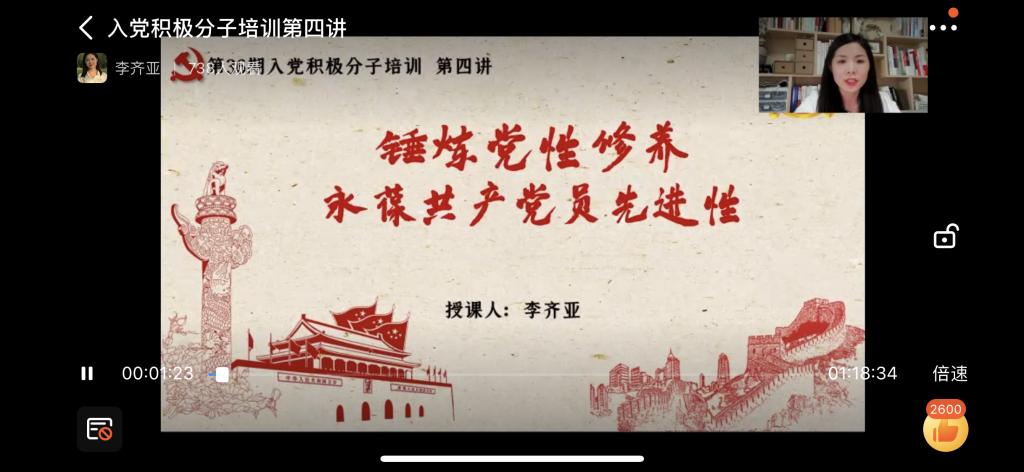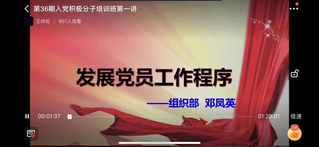 为加强对入党积极分子的培养教育,确保发展党员质量,根据《中国共产党发展党员工作细则》有关规定,按照疫情防控要求,4月27日至5月4日,我校第36期入党积极分子培训班通过钉钉直播平台线上举行。