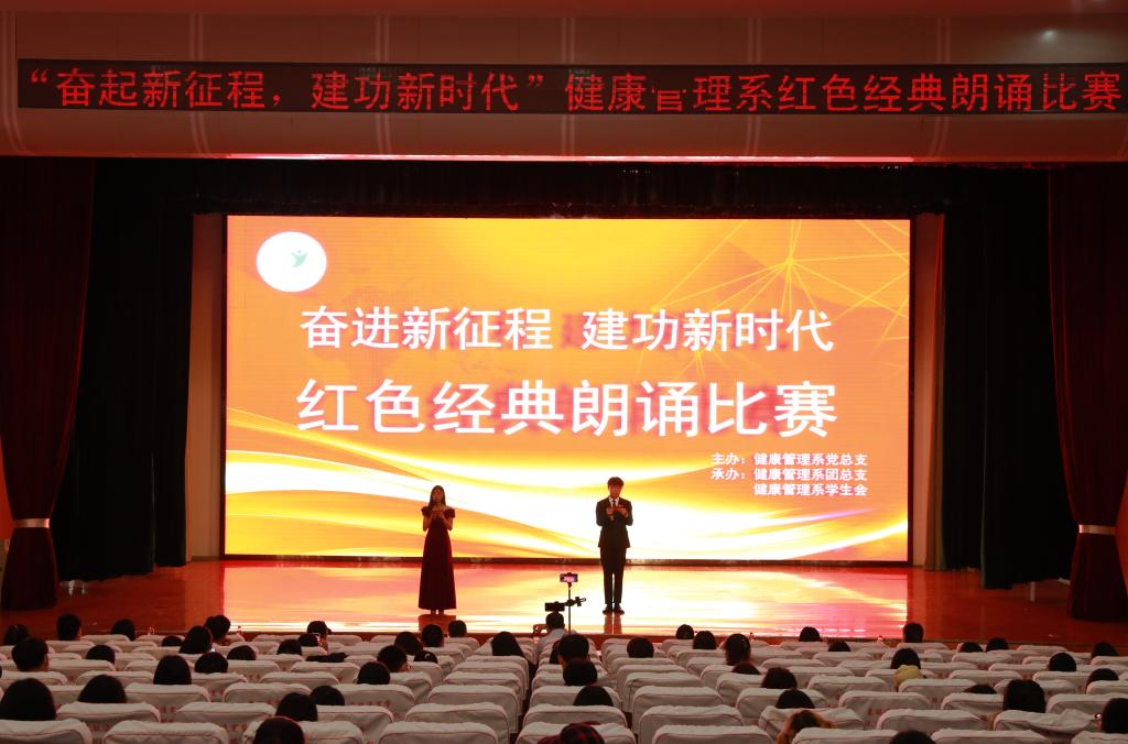 为弘扬红色经典,传承革命精神,5月22日下午,我校健康管理系在学术报告厅举办“奋进新征程,建功新时代”红色经典朗诵比赛。校党委委员、副校长张传宝,学生工作处处长孙战、团委书记于淼、各系党总支书记、团总支书记及健康管理系专兼职辅导员、学生代表300余人参加。