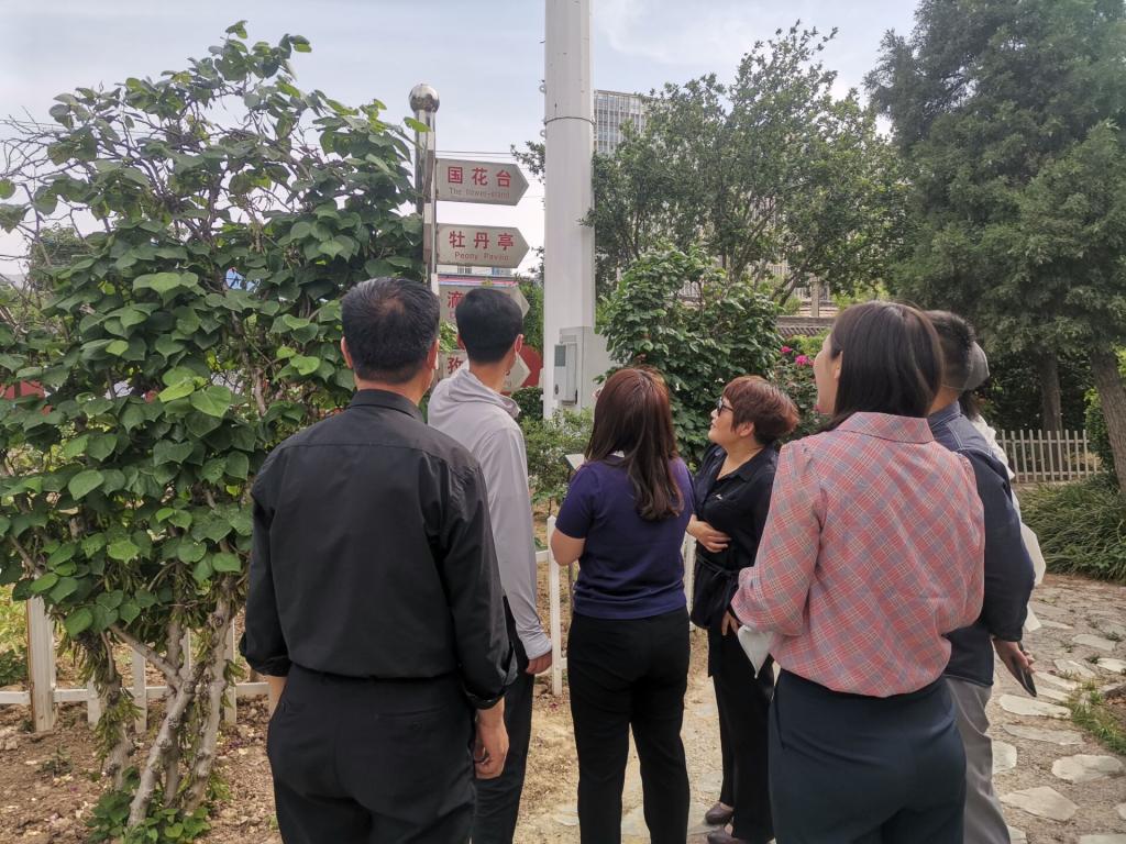 牡丹园标识翻译项目负责人田申老师就两个园区内景点、花株的命名、寓意及文化内涵与有关负责人进行了详细交流,为下一步进行牡丹园标识翻译打下了基础。