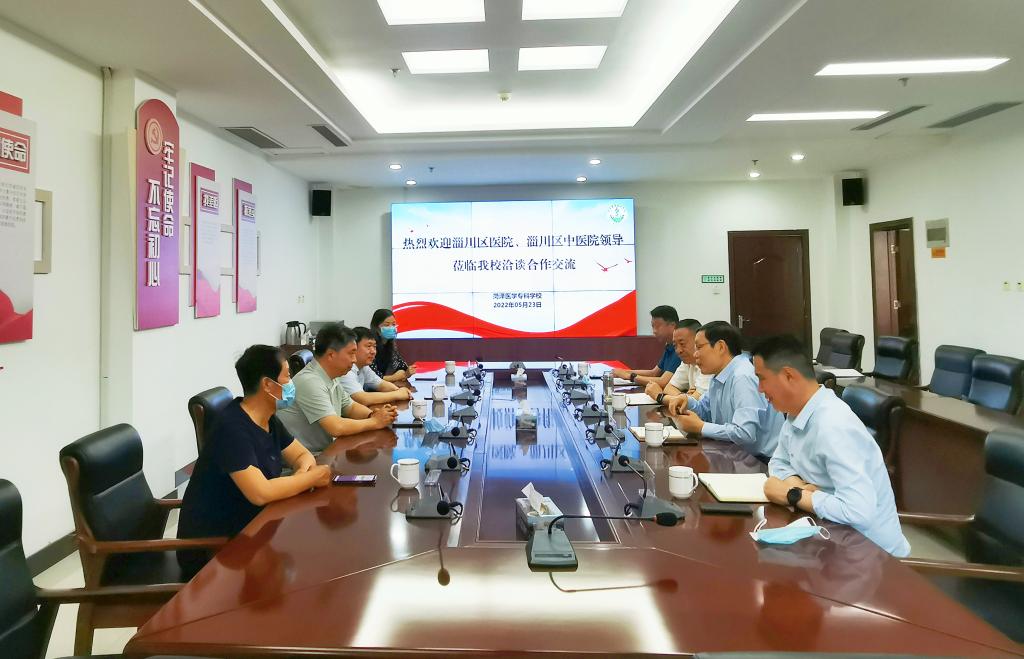 5月23日下午,淄川区医院党委书记孙兰芳、淄川区中医院党委书记王胜国一行4人来我校交流访问。校党委副书记、校长顾润国,党委委员、副校长张传宝及相关部门负责人出席座谈会。