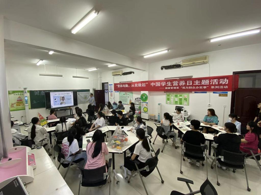 营养周期间健康管理系以“会烹会选,会看标签”为主题,在学习通APP开放“营养与健康”线上学习资源;我系医学营养专业教师崔琳林围绕青少年营养和饮食、营养助力近视防控等方面帮助同学们丰富营养知识,树立健康生活观念;在5月20日中国学生营养日当天,组织朱嵩等老师走进牡丹区南城办事处举办膳食指南专题讲座,为社区居民解读2022版中国居民膳食指南,宣传科学健康养生常识;依托“健康小屋”组织专业教师与志愿者举办“营养均衡,从我做起”科普宣传,传递营养健康的消费理念,突出实践平衡膳食的价值引导,并为师生提供免费健康测量服务。