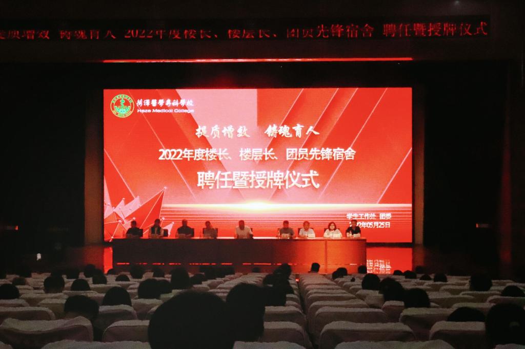 5月25日下午,我校在学术报告厅举办2022年度楼长、楼层长聘任和团员先锋宿舍授牌仪式。党委委员、副校长张传宝,学生工作处处长孙战,团委书记于淼,各系党总支书记、副书记,全体专兼职辅导员,2022年度楼长、楼层长和团员先锋宿舍及学生代表300余人参加。学生工作处处长孙战主持此次仪式。