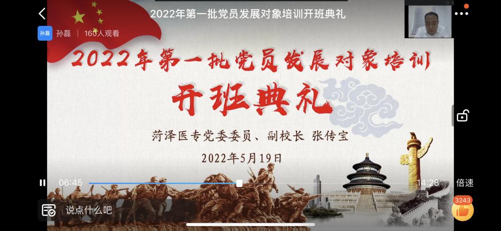 为深入贯彻落实《中国共产党发展党员工作细则》,切实加强党员发展对象教育培养工作,保证新发展党员质量,按照疫情防控要求,5月19日至22日,我校2022年第一批党员发展对象培训班通过钉钉直播平台线上举行。本次培训班由党委组织部举办,共有175名党员发展对象参加,其中教工6人,学生169人。