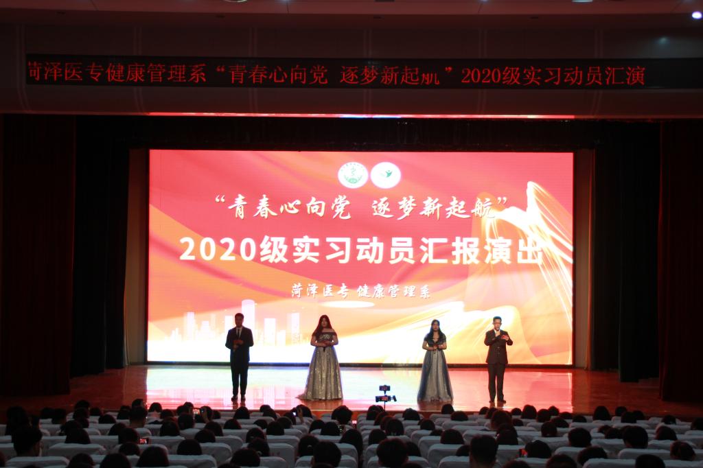 5月29日下午,我校健康管理系在学术报告厅举办第二届“青春心向党,逐梦新起航”2020级实习动员汇报演出。健康管理系党总支书记李莹、主任石晓峰、党总支副书记陈鲁曼,健康管理系全体专兼职辅导员、教师及2020级学生500余人出席本次活动。