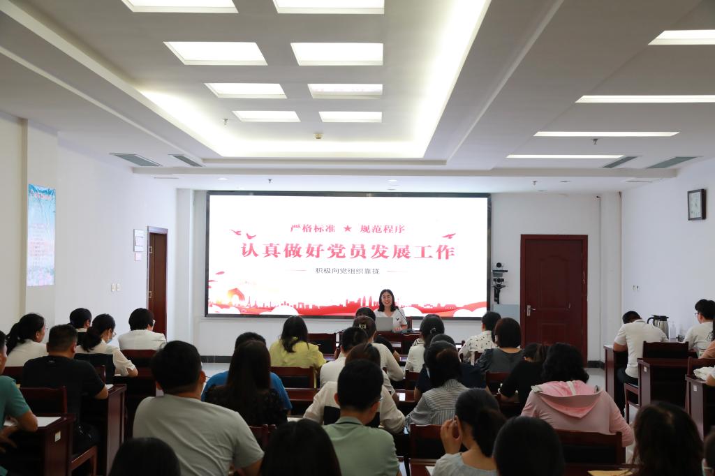 邓凤英结合我校实际情况,在培训中进一步强调了发展党员工作的重要意义和总体要求,并结合近年来我校发展党员工作有关情况,详细介绍了工作原则和具体流程。培训紧紧围绕发展党员工作概述、要求及原则、工作流程、归档要求和常见问题等内容进行全面讲解和指导;强调发展党员要始终把政治标准放在首位,坚持把培养教育贯穿全过程;着重对发展党员工作流程的各个阶段、各个具体程序进行讲解,对时序把握上的注意点、每个程序时间、内容、材料要求以及常见问题进行了重点阐述,将“严的标准、严的培养、严的程序、严的责任”贯彻落实于发展党员工作全过程。