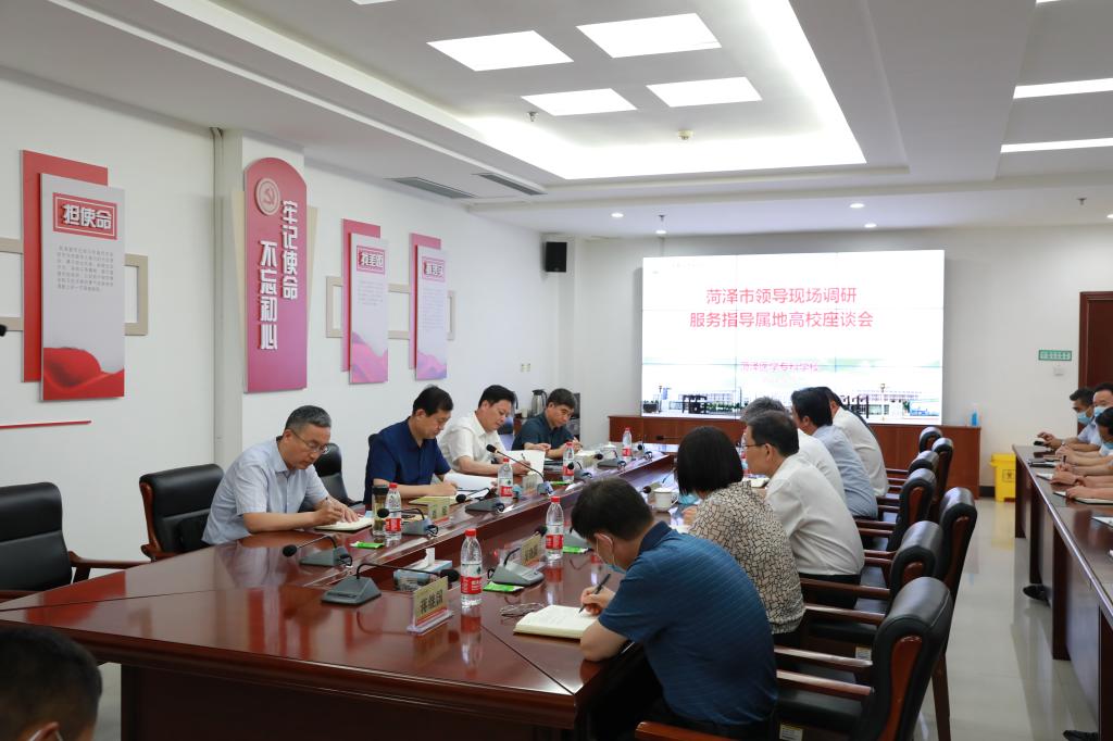 6月6日上午,由菏泽市副市长、郓城县县委书记姜凌刚,市政府副秘书长许尚钦,市委宣传部副部长鹿展,市委教育工委办公室负责人崔中华等一行4人组成的菏泽市领导服务属地高校工作组来我校进行调研。校党委书记于洲声,党委副书记、校长顾润国等全体校领导班子和各二级部门党政负责人参加座谈会。
