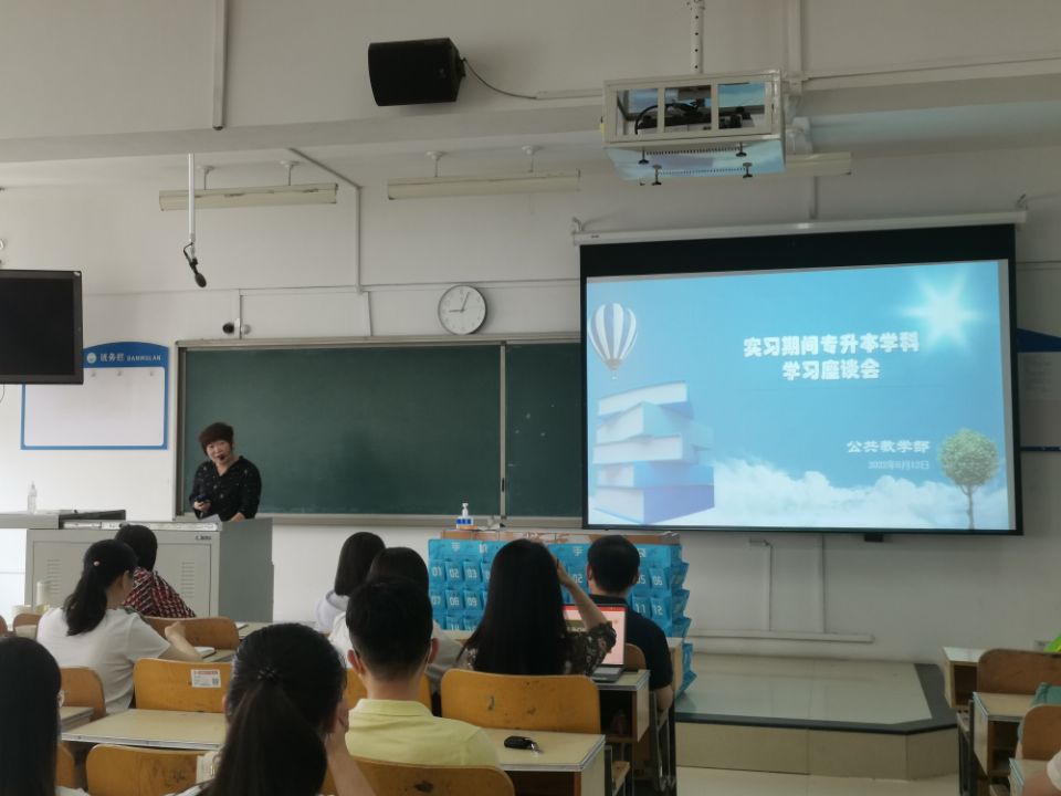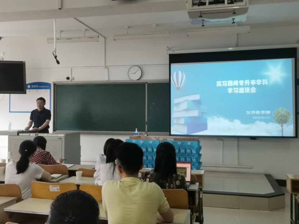 6月12日上午,公共教学部在1号教学楼403教室组织召开“实习期间专升本学科学习座谈会”。座谈会由公共教学部副主任任俊莲主持,副校长蒋继国应邀参加,公共教学部党总支书记李岩、副书记孙蕊、专升本考试科目教师及我校2020级部分学生代表与会。